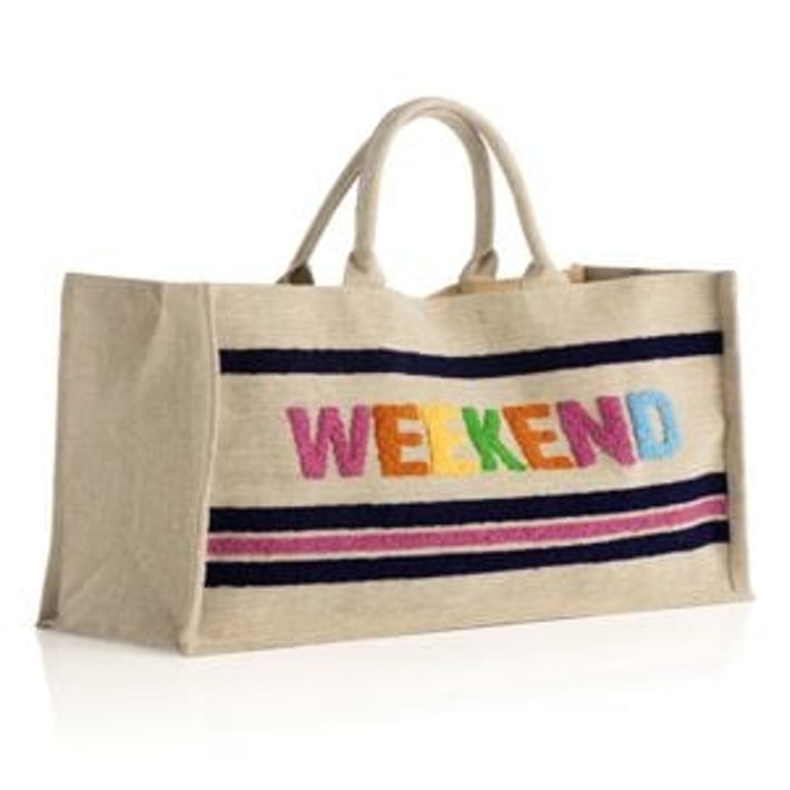 • "WEEKEND" BEACH BAG, NATURAL
