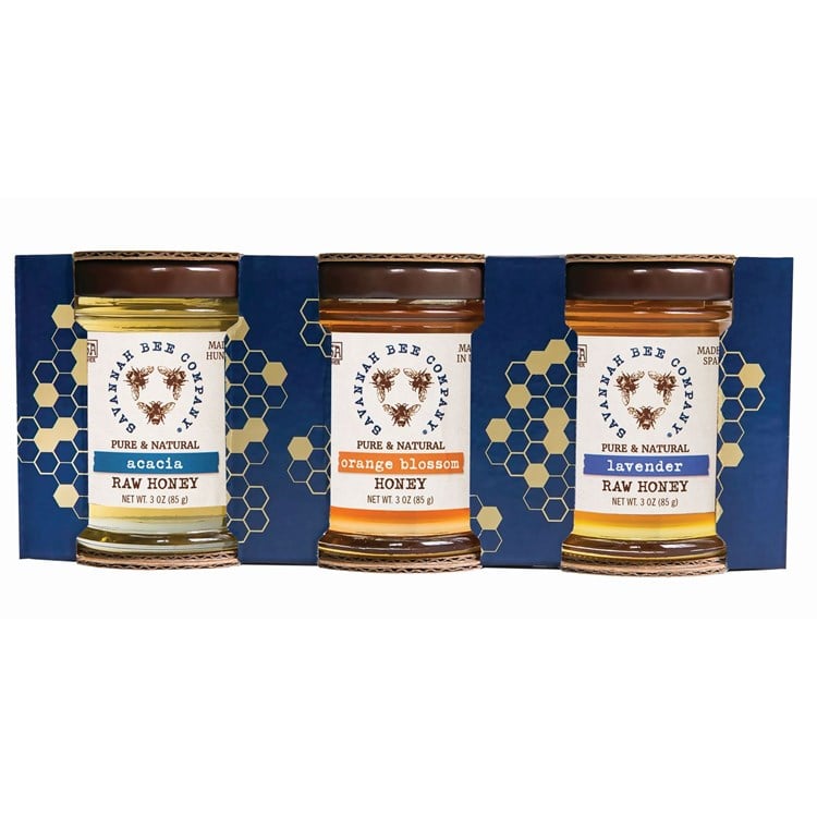 Description: Includes 3 oz honey samples of Acacia Honey, Orange Blossom Honey, and Lavender Honey. Acacia Honey: With vanilla notes and a luminous pale hue, our premium Raw Acacia Honey touches the palate with delicate perfection. Known for its distinct clarity and resistance to crystallization, this single-varietal gem comes from honey harvested from the forests of black locust trees that grow from Northern Italy to Ukraine. Orange Blossom: Bright and sweet as just-picked fruit, our Orange Blossom Honey brings a juicy citrus aroma to drinks and foods, especially baked goods. The bees visit the vast blooming orange groves of central Florida to bring you this sunshine in a jar!Lavender Honey: The bees love lavender’s fragrant purple blooms, giving this popular honey varietal the taste and aroma of a summer mountain meadow. Sourced from the wild along the verdant hills between Spain and Portugal, our Lavender Honey provides a mild sweetness and distinct floral notes.