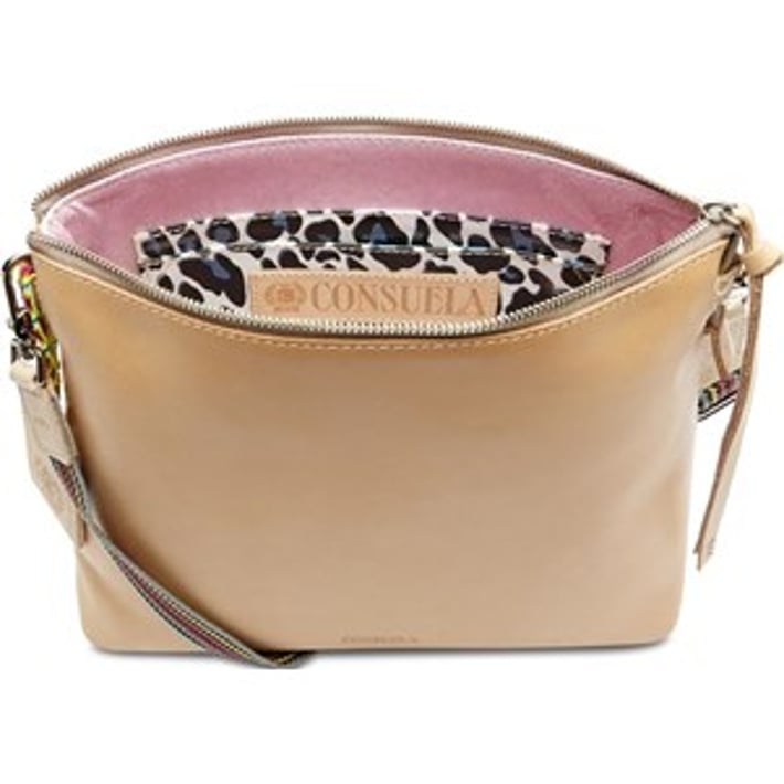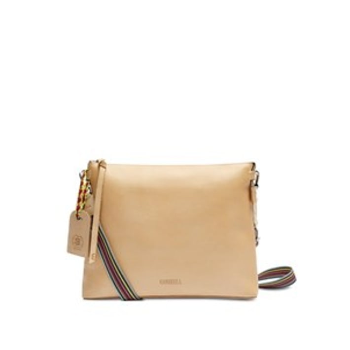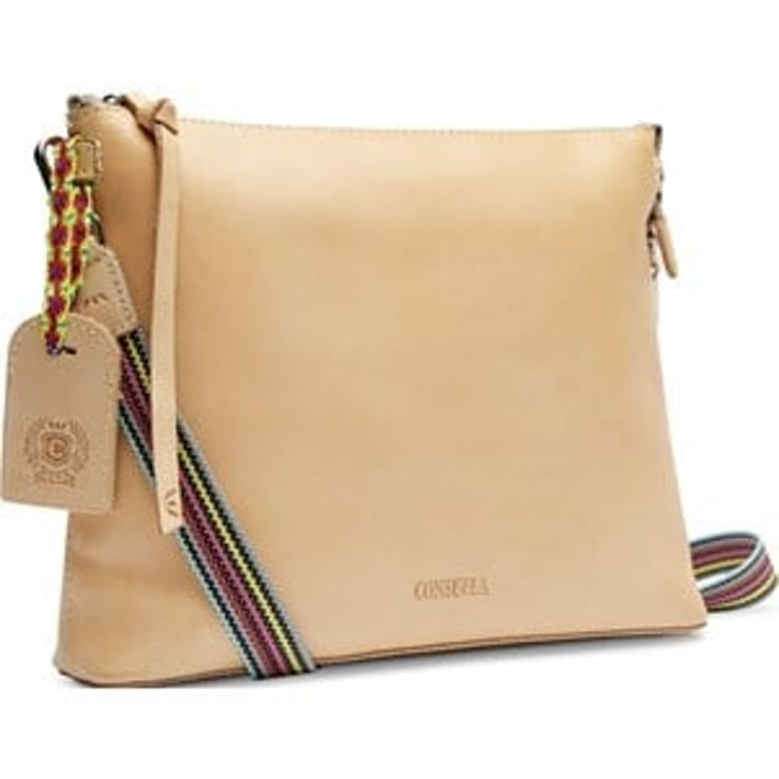 The Downtown Crossbody bag is not only stylish with its embroidered design, but also practical with its adjustable strap and two interior pockets. Its roomy open interior allows you to carry all your essentials and more, making it the perfect accessory for a day out. Whether you're running errands or exploring the city, this crossbody bag is ready to accompany you on all your adventures.