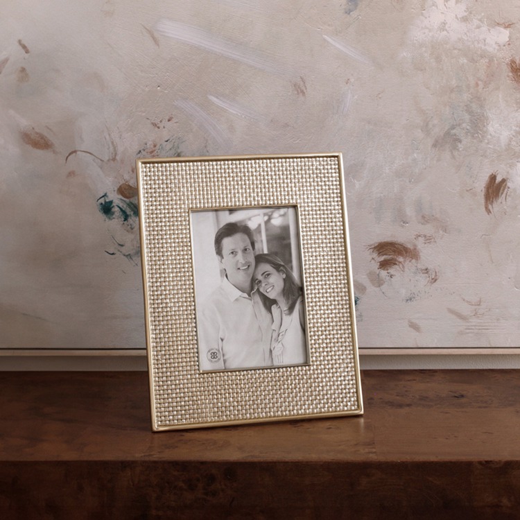 Tell her, “You’re wonderful. Unique. I love you" with a deliciously glamourous gold-tone frame from Beatriz Ball's FRAME Sierra Modern Tiffany collection. Our FRAME Sierra Modern Tiffany 5 x 7 (Gold) is richly detailed and handsomely styled and made special by its proprietary gold-tone surface. With its Sierra Modern metallic finish, the glistening texture provides a light-catching border for a favorite photo. Makes a luxurious gift for anyone on your list. Some of our most exciting new Beatriz Ball frames are a celebration of glamourous Holly Golightly style, and the handsome frame looks stunning wherever it’s placed. The delightfully decorative piece adds a modern new edge to Beatriz Ball’s award-winning designs. The luxe frame feels both contemporary and classic at the same time and transcends all interior styles and trends. Stunning pieces, timeless and unique, the FRAME Sierra Modern Tiffany collection introduces designs that have never been seen before. An original Beatriz Ball design handmade of an FDA safe, easy-care aluminum alloy with a special metallic finish. Tarnish free.