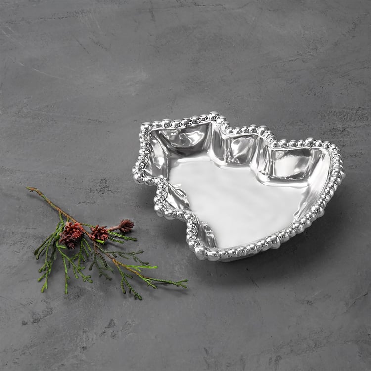 Description: "Oh, Christmas tree..." With its iconic shape, gleaming surface, and border of shimmering metal pearls, Beatriz Ball's GIFTABLES Holiday Christmas Tree Mini Bowl is the perfect piece to make the Season bright. A charming dish custom made for serving Holiday sweets or little nibbles when friends come to call. Of heirloom quality, it makes a merry and bright hostess gift. An original Beatriz Ball design hand
