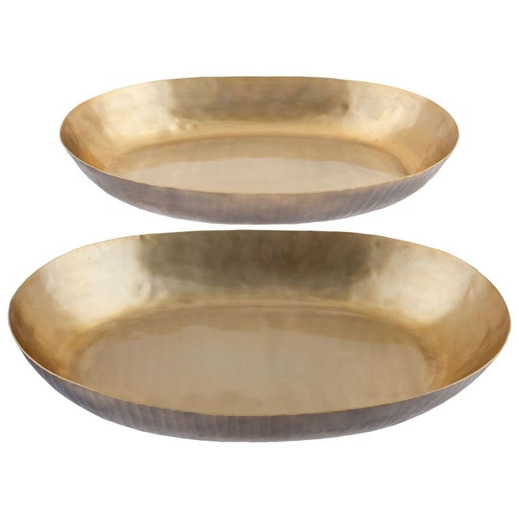 Our Gold Tray Set of 2 is the perfect addition to any home decor. Made from aluminum, these trays add a touch of elegance and style to any coffee table or centerpiece. The shiny gold finish adds a flashy touch, while the versatile design allows you to customize them to fit your personal style. These trays make a great gift for a friend or loved one, adding a cozy and chic touch to their home. Make a statement with our Gold Tray Set and elevate your home decor today.