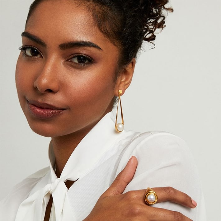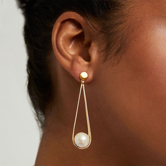 The Ipanema Earrings feature two checkered-cut circular gemstones suspended from a statement-making teardrop setting.