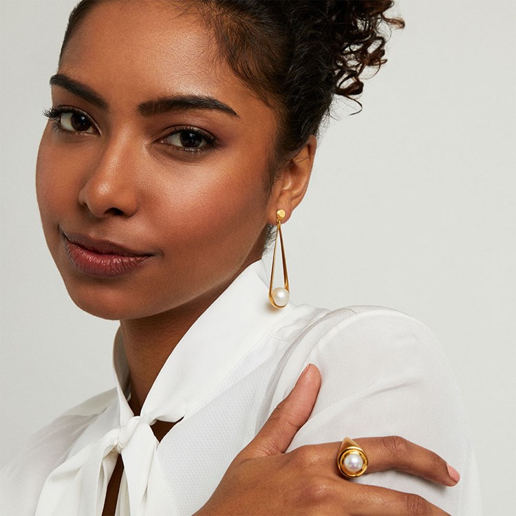 Description: The Ipanema Earrings feature two checkered-cut circular gemstones suspended from a statement-making teardrop setting.
