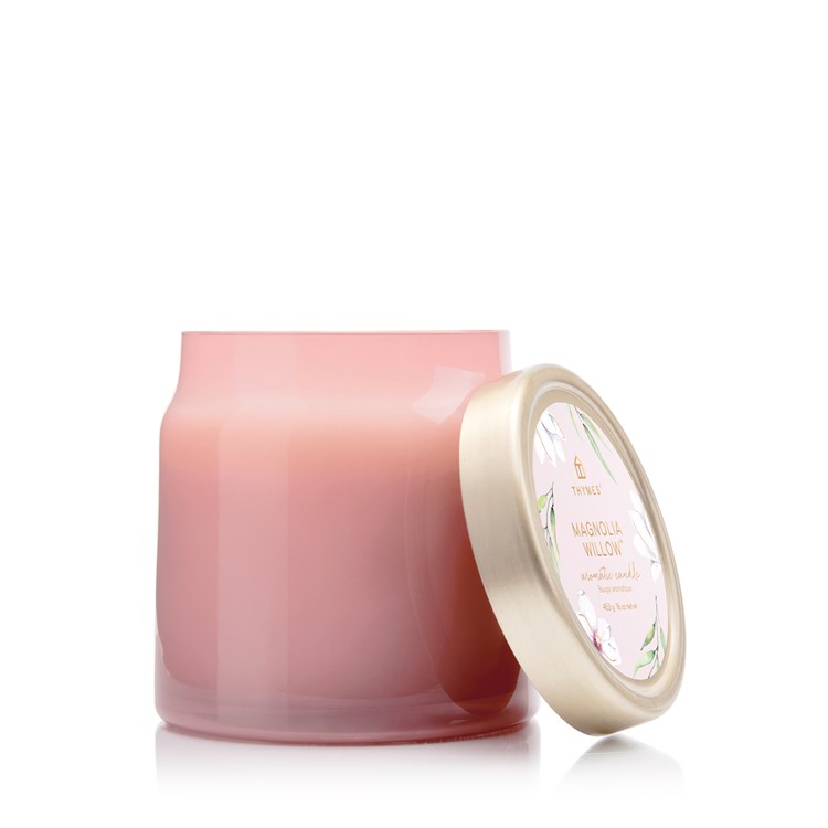 Dewy magnolia blossoms, sheer mandarin, and crushed jasmine leaves bloom into a refreshing, floral fragrance while the beautiful soft pink glass vessel makes the perfect home accent piece.