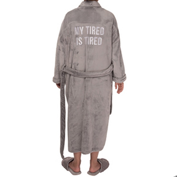 Description: Made from ultra-soft and plush material, our My Tired Is Tired Robe is designed for maximum comfort and relaxation. The luxurious fabric will make you feel like you're wrapped in a cloud, perfect for lounging around the house or enjoying a lazy day in bed. The robe features a stylish design with a tie waist and pockets, making it both practical and chic. Pair it with the matching slippers for a complete loungewear look that will have you feeling cozy and stylish all day long. Treat yourself or a loved one to the gift of relaxation with our My Tired Is Tired Robe.