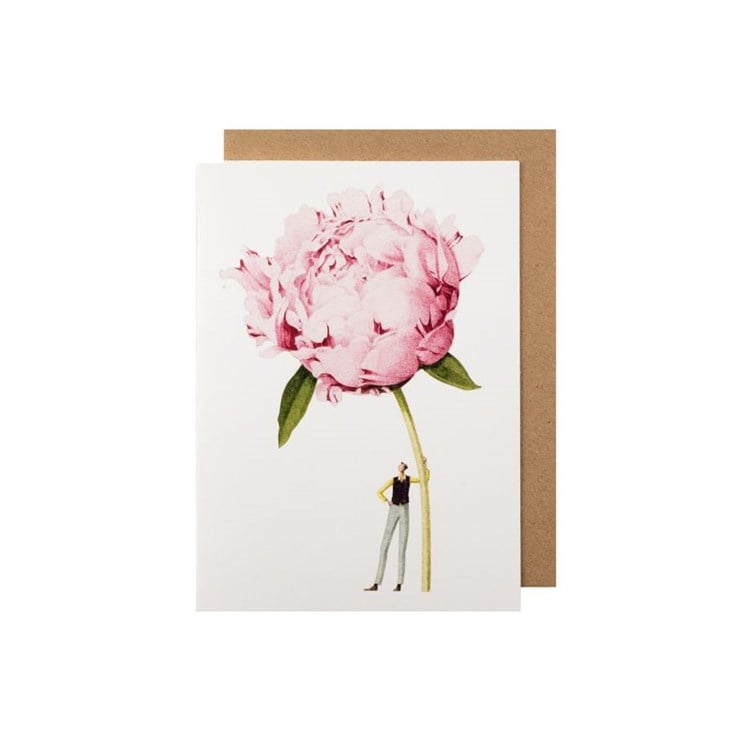 Description: This lovely pink peony greeting card, illustrated by Laura Stoddart, features a beautiful botanical motif sure to brighten anyone's day. Perfect for any occasion, its unique design is sure to make it a treasured keepsake. 5 x 7" greeting card presented with kraft paper envelope.