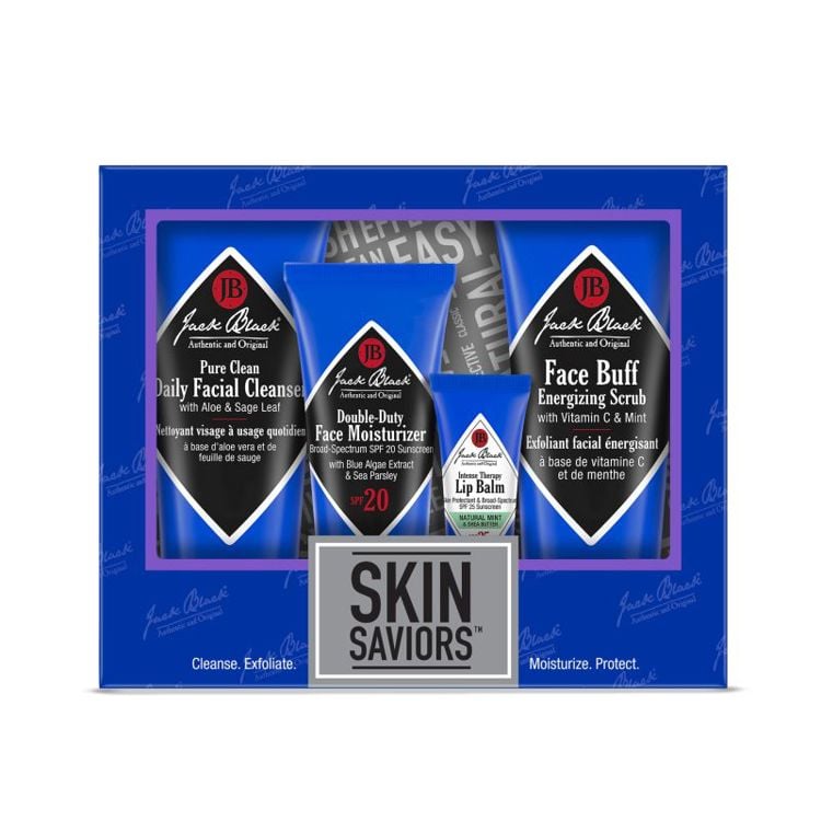 Pure Clean Daily Facial Cleanser, 3 oz.A 2-in-1 liquid cleanser and toner that removes deep-down dirt and oil for clear, smooth, shave-ready skin.Face Buff Energizing Scrub, 3 oz.A pre-shave cleanser and facial scrub in one that gently exfoliates for an easier, closer shave.Double-Duty Face Moisturizer SPF 20, 1.5 oz.This lightweight, emollient moisturizer is an advanced facial treatment and broad-spectrum sunscreen in one easy-to-use product.Intense Therapy Lip Balm SPF 25, Natural Mint & Shea