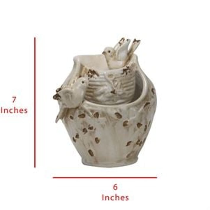 The Foreside Ivory Birds Fountain is a beautiful and unique addition to any bird lover's collection. Made of durable ceramic, this fountain combines the charm of a birdbath with the soothing sounds of a well. The distressed finish adds depth and character to the piece, making it a stunning focal point in any home or office. Easy to maintain, this fountain is a perfect gift for anyone who enjoys the beauty of nature and the peaceful presence of birds. Bring the beauty of the outdoors inside with the Foreside Ivory Birds Fountain today!