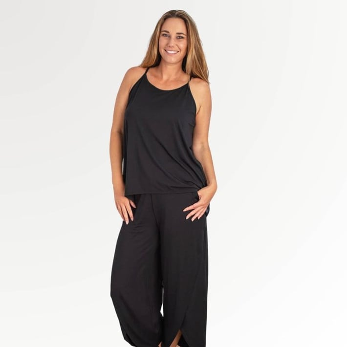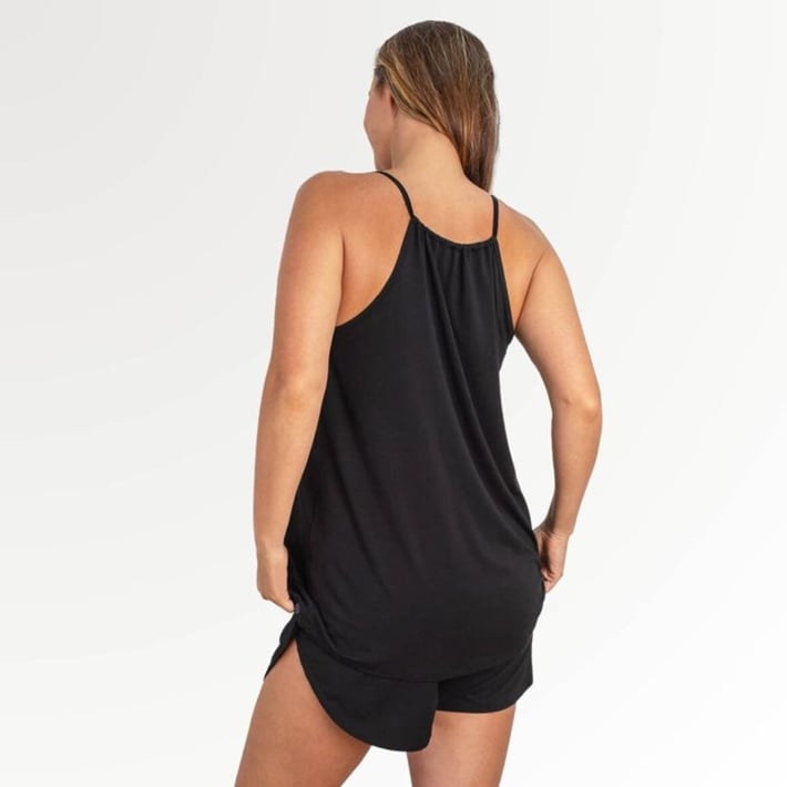 Classic draping suspended on delicate lingerie straps. The gathered backstrap fine-tunes the fit. The tulip tank is an elegant, simple staple that flows beautifully over any bottom in our collections.