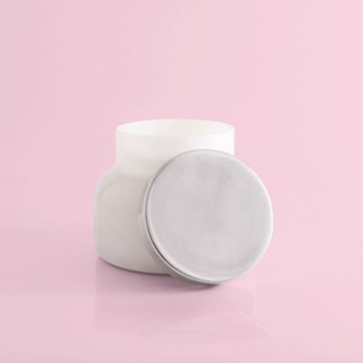 Description: Brighten up any space with the clean and elegant look of our White Signature jar. This memorable and iconic Volcano fragrance will entice you with its tropical citrus and yummy sugary notes.